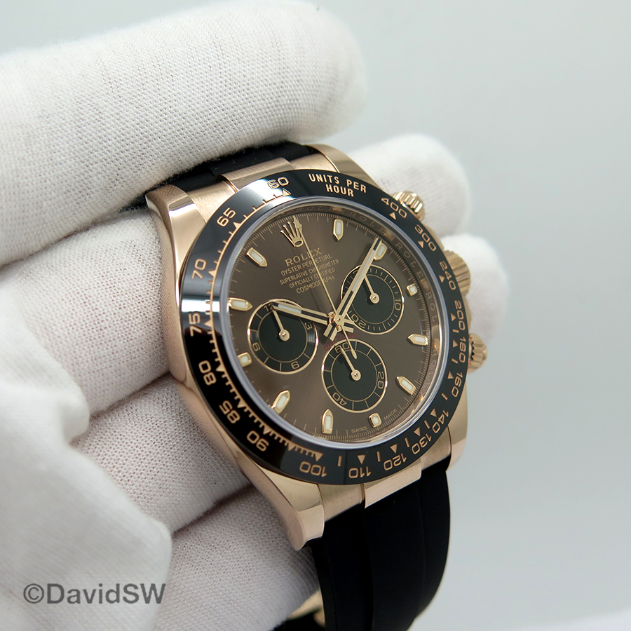 This is an 18K Everose gold Rolex Cosmograph Daytona LN It has an alligator leather strap with an 18k Everose gold deployant buckle, a scratchresistant sapphire crystal, and round chronograph pushbuttonsCosmograph Daytona Oysterflex LN (Chocolate Arabic Dial) Source This Watch SOLD Rolex Submariner Date LV £14, Rolex Cosmograph Daytona (White Dial) Source This Watch SOLD Rolex YachtMaster 40 (Oysterflex) Source This Watch SOLD Rolex SeaDweller (MK1)The gold rubber band Rolex Daytona look alike watches has a diameter of 40 mm and the outer ring is black Cerachrom ceramic, which is not only corrosionresistant and scratchresistant, but also PVD technology is used to plate platinum or gold for clearer graduations The Cerachrom ceramic outer ring is integrated to help fix the mirror surface to the case and ensure water resistance